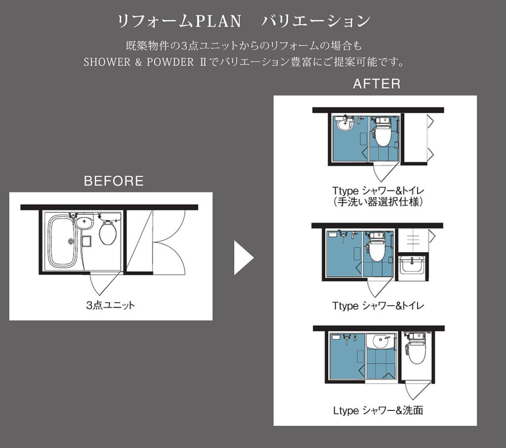 3点ユニットを「SHOWER & POWDERⅡ」に変えるだけで、