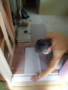 2階のフローリングは既存床に重ね貼はりタイプ薄いタイプのフローリングになります。