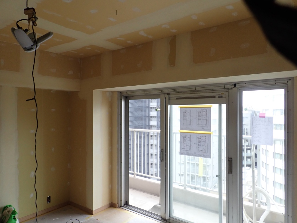 前回は壁角スタット組/天井ボード貼まで工事が進みました。