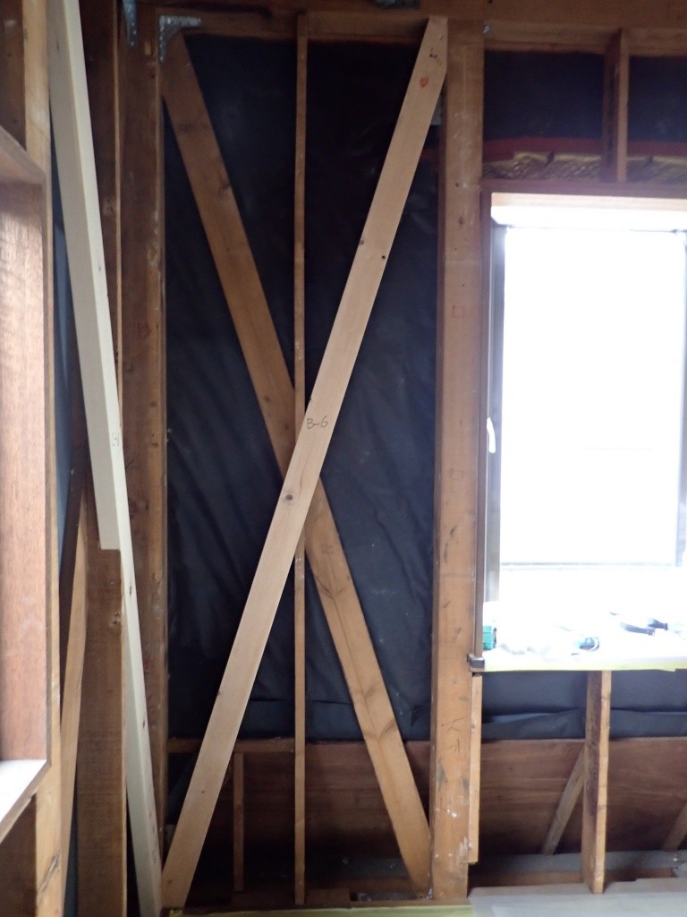 木工事耐震補強を含めた工事のため耐震補強の筋交いやホールダウン金物を取り付けていきました。