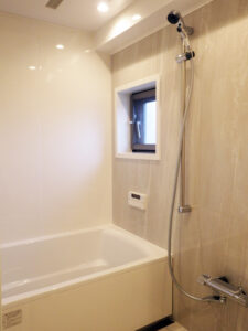 限られたスペースでもゆったりと入浴でき、清掃性と断熱性も向上した浴室空間が完成しました。