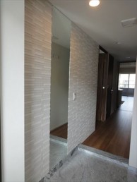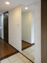 自然素材でエントランスを演出しながら生活臭にも効果大 江東区K様邸