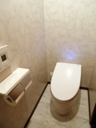 高品質の大理石水磨き調床タイルとハイブリッド節水トイレ 世田谷区 Y様邸 -