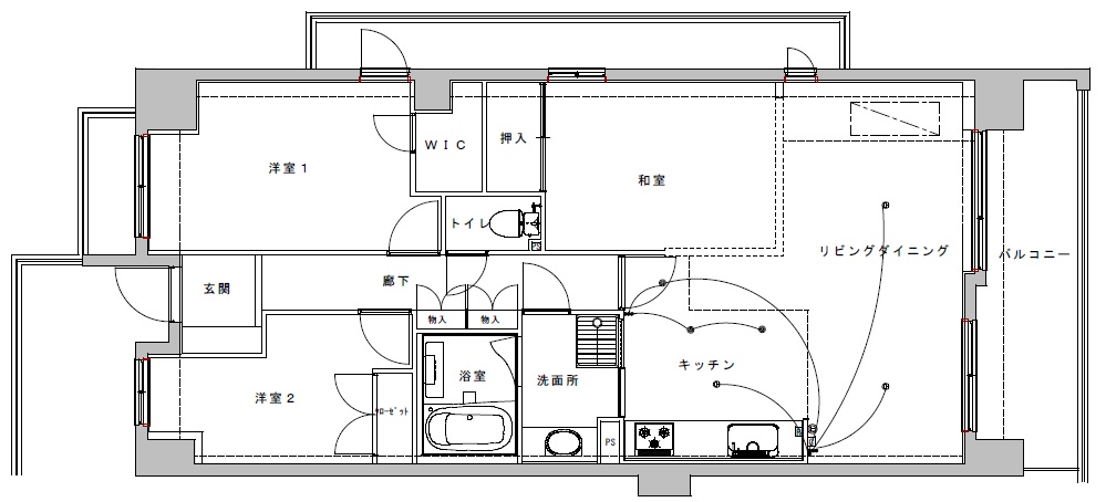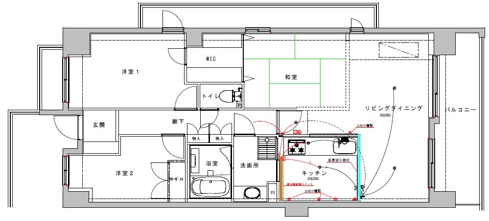 壁付I型キッチンから対面式のキッチンへの変更をご検討されていました。