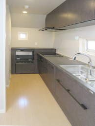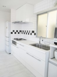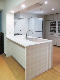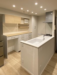 明るいキッチンをご希望だったので、クロスやフロアタイルも明るいものをお選びいただきました。