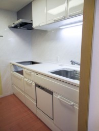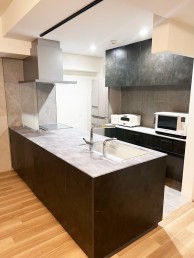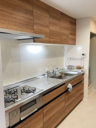 既存のキッチンは存在感のある木目調のキッチンでシックな感じでしたが、