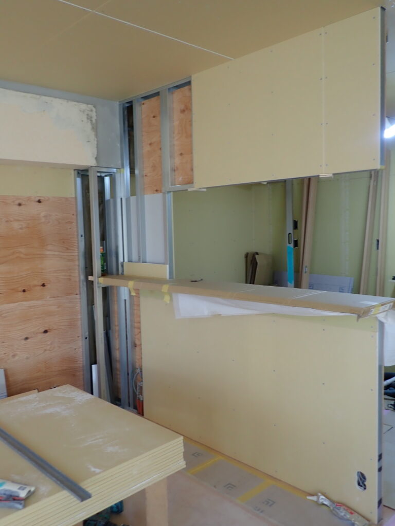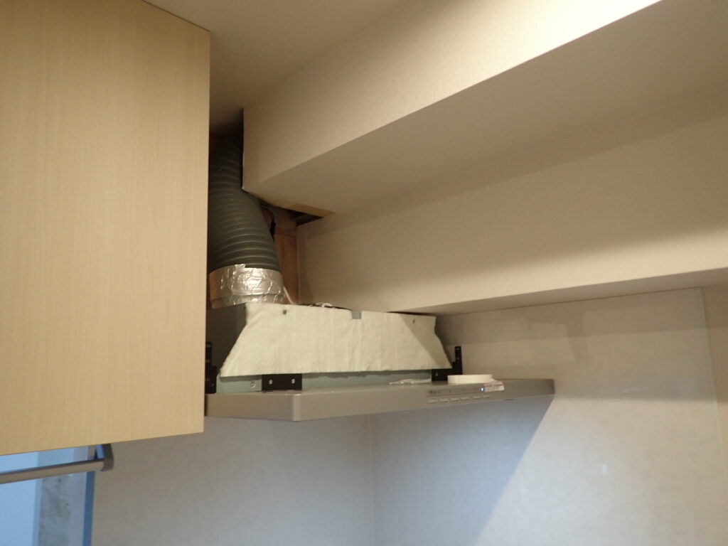 ①キッチンの反対側には炊飯器など電化製品を置くことが出来る収納棚を新たに設置
