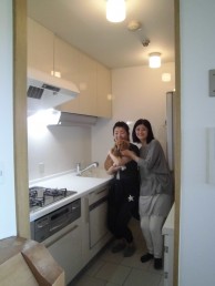 今回は現場を一緒に納めさせていただいた、スタッフが私の代わりに 新しくなったキッチンの前にてお客様と記念写真です。