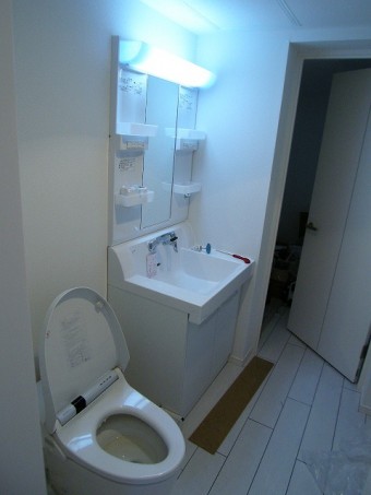 洗面化粧台を交換する工事をしました。ご希望通り、清潔感ある水廻りを実現できました。