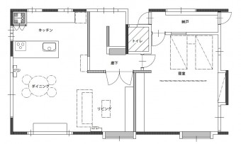 以前はお母様の寝室部分。皆で集まるキッチン・ダイニングを南側にして明るく暖かく暮らす工夫です。