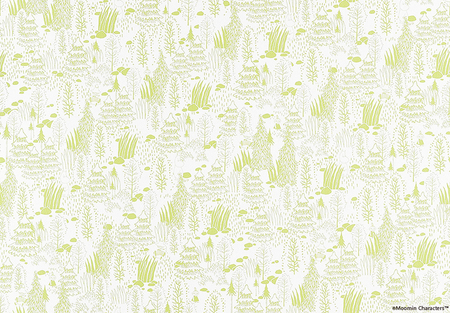 壁にはアクセントでムーミン柄のクロスを施工しました。